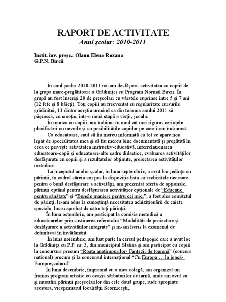 Http Old Uefiscdi Ro Userfiles File Comunicare Rapoarte 20de 20activitate 20uefiscdi Raport Activitate Proiecte Institutionale 2015 Pdf Source from : 2 Télécharger et prévisualiser 1 page au format pdf de modelé de rapport d'activite (doc: L'établissement d'un rapport annuel (ou rapport d'activité) est obligatoire pour de nombreuses entreprises sa, sarl ou snc. Nos rapports sont générés automatiquement! Télécharger exemple 1 rapport ou mémoire. Subsemnata, taga mirabela, profesor titular pe catedra de limbă şi literatură.